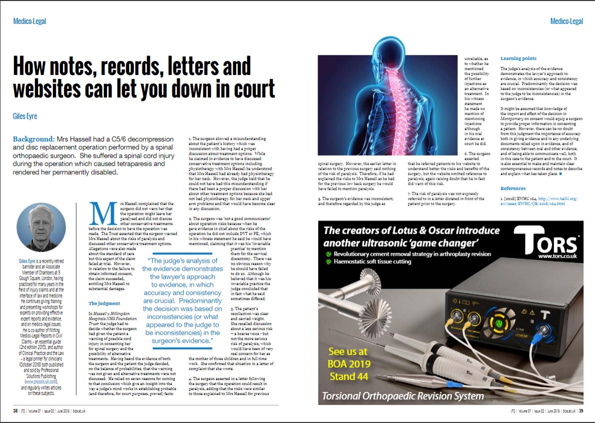 [1] Clinical Practice and the Law – a legal primer for clinicians (see section 2.8 and section 6 (records and note making)) and see also in JTO